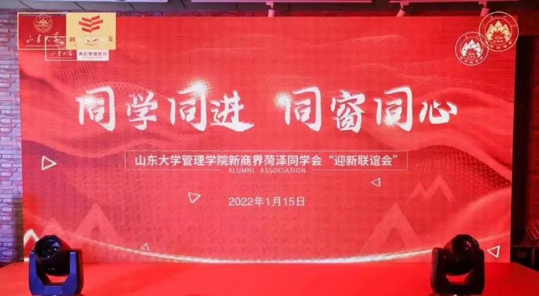 2022年1月15日,“同学同进、同窗同心”山东大学管理学院新商界菏泽同学会“迎新联谊会”活动首次通过“线上”连线互动的方式欢聚一堂,在菏泽新闻悦海酒店与济南kb官网入口营销中心两地同步举办,实现济南、菏泽两地同屏联动!