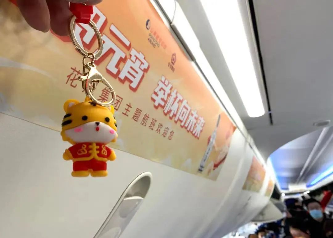 在这特别的日子里,大家相聚蓝天,花好月圆。乘务组还用心为每位旅客送上了象征着虎年福运和吉祥的伴手礼,是一个可爱的小老虎钥匙扣,愿大家在虎年的每一天里都人圆,事圆,家圆,福圆,万事梦圆,鸿运连连!